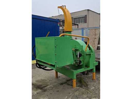 Macchina progettata per distruggere rami e materiali in legno utilizzando trasmissione PTO del trattore. Solida costruzione industriale. Segni visivi di utilizzo presenti (graffi e lievi usura).