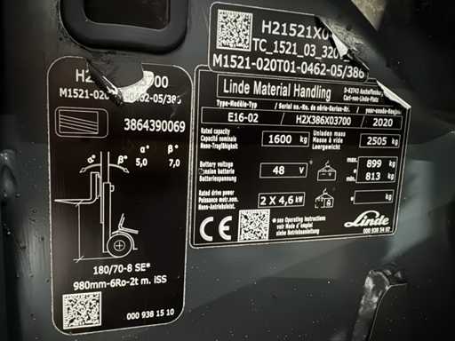 01/2021 Servizio + UVV 12 / 2026 Linde E16-02 EVO 1.600Kg Triplex 462cm 2x Gomme nuove