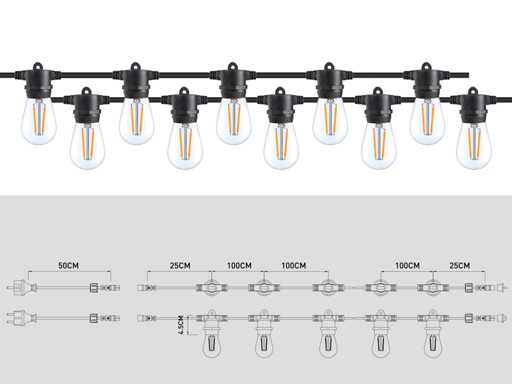 10 metri cavo impermeabile E27 Fairy Lights collegabile (8x)