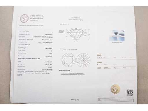 Anello brillante rotondo con diamanti da 5,00 carati accreditato IGI
