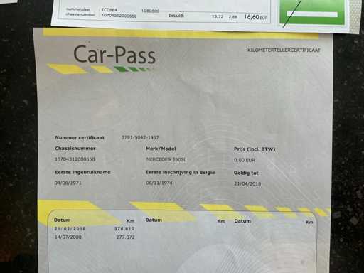 Il certificato di revisione mostra 576810 km, oltre ai 277072 km originali.