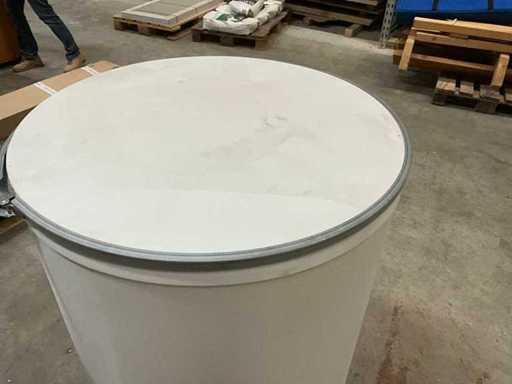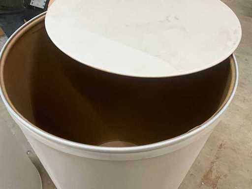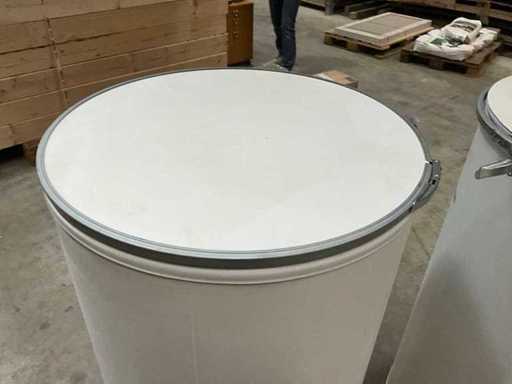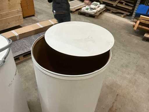 2 pezzi di materiale sfuso: contenitore bianco, coperchio in legno e anello di tensione alto 113cm 67cm di diametro
