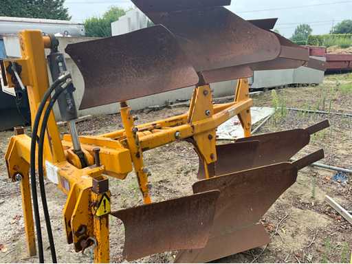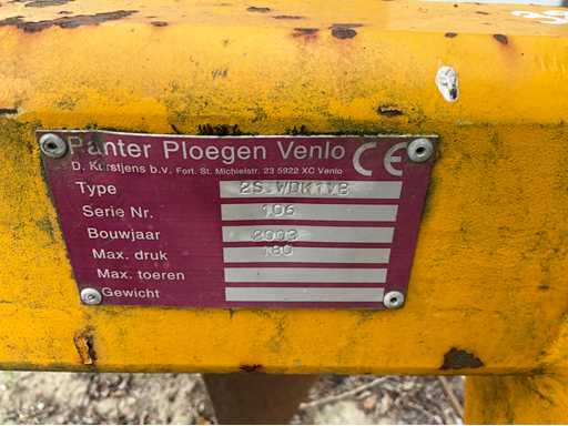 Robusto aratro reversibile di Panther Ploughs Venlo, tipo 2S VDK1VB, costruito nel 2003. Dotato di comando idraulico, 3 cesoie e attacco a 3 punti per impieghi gravosi, l'aratro è completo e funzionale. La vernice e le cesoie presentano ruggine e segni di usura, ma tecnicamente ancora utilizzabili - Aratro ideale per lavorazioni più pesanti.