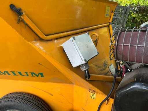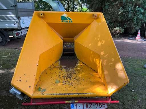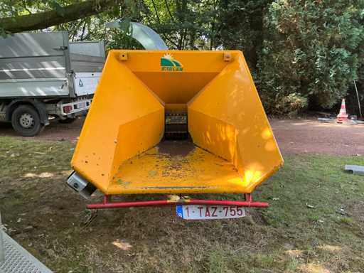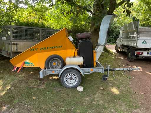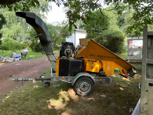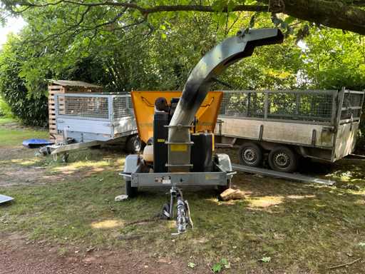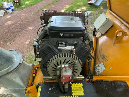 Grinder with Vanguard 22HP V-Twin engine in used condition, equipped with anti-stress function and a swivel discharge chute.