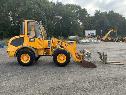 Dotato di: attacco rapido idraulico, comando a joystick, benna 3 in a 1850 mm, forche per pallet, forche 1000 mm, luci di lavoro, lunotto termico, gancio di traino, tergicristalli, pedale in pollici.