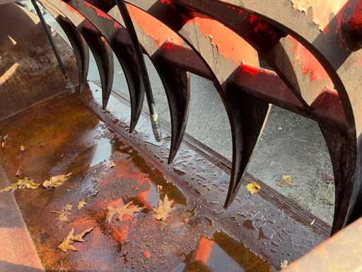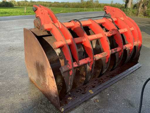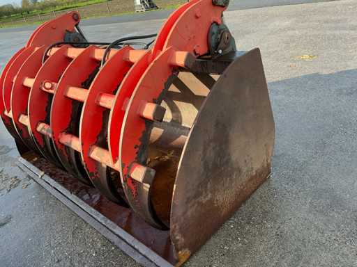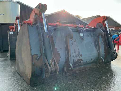 Dotato di: attacco a cambio rapido Volvo, buon funzionamento, Hekamp Silage tipo S-250 D120 H100, numero di serie 140054-1, anno di costruzione 2014, peso 1320 kg, portata massima 4560 kg, volume rettilineo 1.825 m³, volume secondo ISO 7546 = 2.030 m³, adatto per lo standard Volvo L-60 G / Volvo, prodotto da Hekamp Werktuigen & Aanbouwdelen a Kootwijkerbroek (NL).