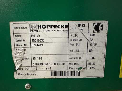 2015 Hoppecke 80V 160Ah caricatore elettrico carrello elevatore