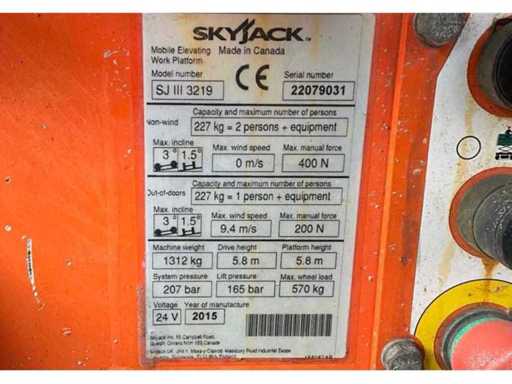 2015 SkyJack SJ III 3219 Piattaforma Aerea
