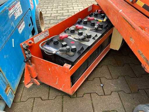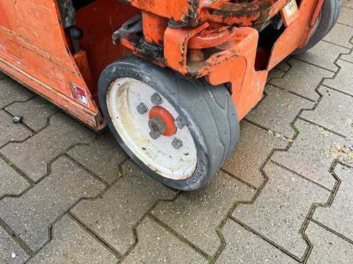 Utilizzo: Al chiuso; altezza del pavimento della banchina 5800 mm; dimensione della piattaforma estenibile circa 2500x650 mm; caricabatterie interno 230 Volt; controllo della gabbia; Piattaforma di collegamento di alimentazione a 230 Volt; altezza di trasporto circa 1750 mm; condizioni di lavoro;