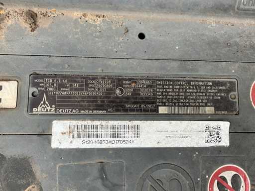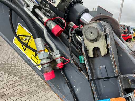 Classe di emissione: stage V/IV finale. Dotato di: Attacco rapido idraulico con funzione di rotazione, funzione benna falciante, funzione martello/smistamento, braccio di regolazione, lama scorrevole, aria condizionata, telecamera a 360°, controllo proporzionale, sistema di lubrificazione automatica, smorzamento del braccio