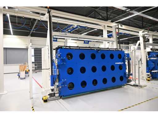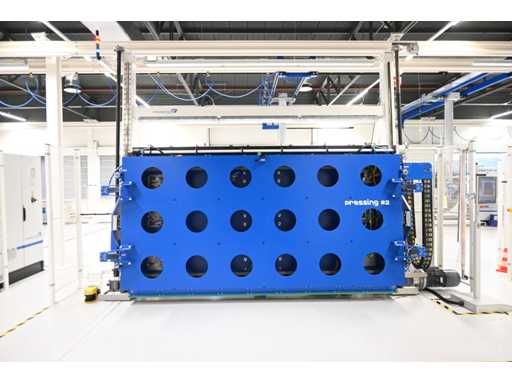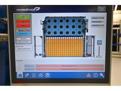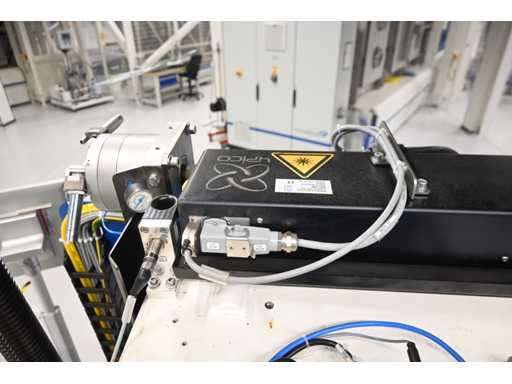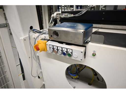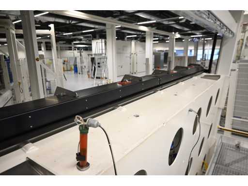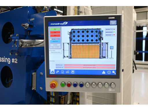 Equipaggiato con controllo touch screen Beckhoff e protezione laser Sick. Equipaggiato con sistema di polimerizzazione UV 4Pico A, tipo: U-Source 3700 mm. Dimensione approssimativa della larghezza della pressa. L380 x H200 cm. Investimento meccanico €180.000