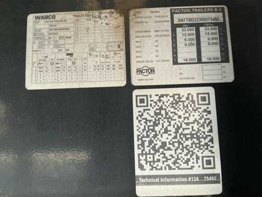 massa massima 33000kg, accoppiamento centrale della distanza al retro del veicolo 1200cm, lunghezza totale 1374cm, larghezza 255cm Asse sollevante, asse sterzo, dimensione pneumatici 385/55R22,5