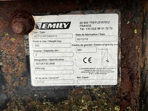 Larghezza di lavoro 2400 mm, azionamento idraulico, orecchie a cambio rapido a 1000 mm di distanza con fori da 610 mm