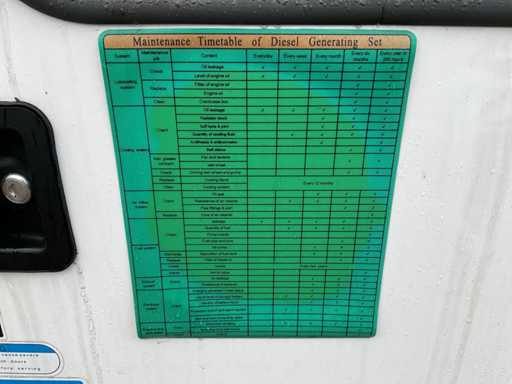 Potenza nominale in kW: 50 kW; tensione 230/400 V, trifase, 50 Hz; corrente di circa 90A a 400 V; potenza motore 50 kW; motore diesel a 4 cilindri; peso 10¹¹³; Nuovo