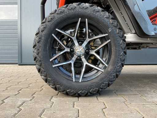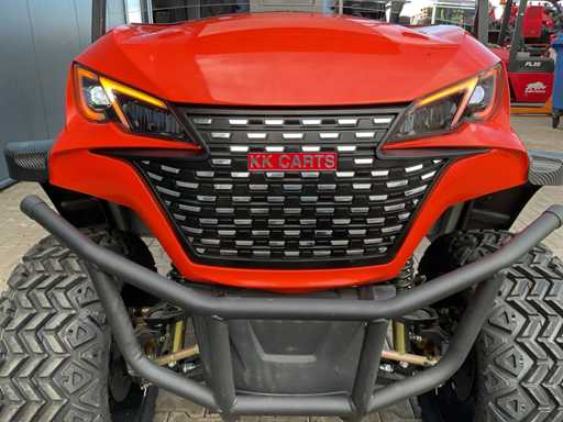 batteria da 60V/150Ah; 5kw; chiave elettrica; sistema multimediale; touchscreen da 10,1 pollici; telecamera posteriore; radio; Altoparlanti; portabicchieri; lampeggiante; connessione USB; caricabatterie wireless per telefono; cavo di ricarica 230v; pneumatici fuoristrada 23x10.00-14; Cinture; sirena; Specchi; Spazio di stoccaggio; aspetto di pelle; freni a disco; cerchio in alluminio; fari a LED; inutilizzato; Trasporto: 315x114,5x155cm