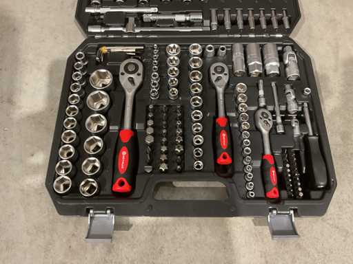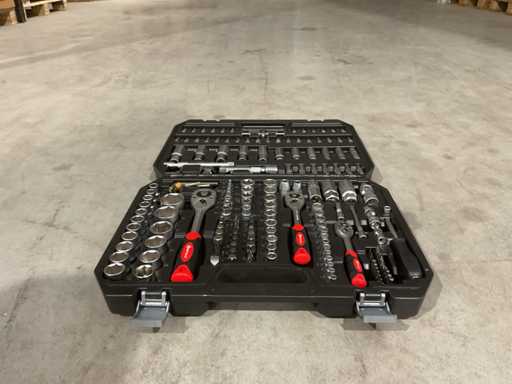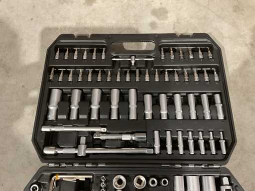 13 bussole da 1/4": 4,4,5,5,5,5,6,7,8,9,10,11,12,13,14 mm; 7 pezzi 1/4" Presa a muro profonda 4,5,6,7,8,9,10 mm; 5 pezzi 1/4 "E-tappi E4, E5, E6, E7, E8; 2 pezzi 1/4 "Asta di prolunga 2' e 4"; 1 pezzo 1/4" Barra a T scorrevole; 1 pezzo di attacco universale da 1/4"; 1 pezzo di attacco da 1/4"; 1 pezzo Leva a cricchetto a sgancio rapido da 1/4"; 30 bussole per punte da 1/4"; 10 bussole da 3/8" 10,11,12,13,14,15,16,17,18,19 mm; 6 bussole da 3/8" 10,11,12,13,14,15; 5 pezzi 3/8 "E-cap E10, E11, E12, E14, E16, E18; 1 pezzo Barra di prolunga 3/8 " 5"; 1 pezzo di raccordo da 3/8"; 1 pezzo Candela 3/8" Tappo 18 mm; 1 pezzo 3/8" cricchetto a sgancio rapido Hanlde; 18 bussole da 1/2" 10,11,12,13,14,15,16,17,18,19,20,21,22,23,24,27,30,32mm; 5 bussole profonde da 1/2" 16,17,18,19,22 mm; 3 pezzi 1/2" E-tappi E20, E24; 2 pezzi 1/2" Prolunga 5" e 10" (con adattatore a tre vie); 1 pezzo di attacco universale da 1/2"; 1 pezzo di attacco da 1/2"; 2 pezzi 1/2 "cappuccio candela 16 mm e 21 mm; 1 pezzo leva a cricchetto a sgancio rapido da 1/2"; 1 pezzo Set di chiavi a brugola 1,1,5,2,2,5,3,4,5mm; 20 pezzi da 25 mm in supporto per bit; 24 pezzi punte da 30 mm; 1 pezzo manico girevole; Non utilizzato in scatola (Dimensioni di trasporto 450 x 90 x 350, Peso 8,4 KG)