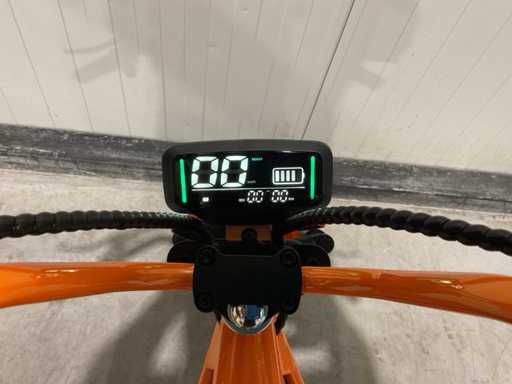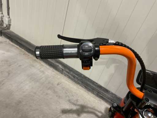 Equipaggiato con motore 48V 1000W; Illuminazione LED davanti e dietro; Cruscotto a LED con contachilometri; 3 impostazioni di velocità; Velocità massima di circa 45 km/h; Autonomia +-20 km; Altezza della sella: 62cm; Motore elettrico direttamente sulla ruota posteriore!; Dimensioni assemblate: 130x70x90cm (LxAsxSuperficie); Peso massimo consentito: 100KG; Non utilizzato nella scatola (Dimensioni di spedizione: 1200x320x640, peso 41kg)