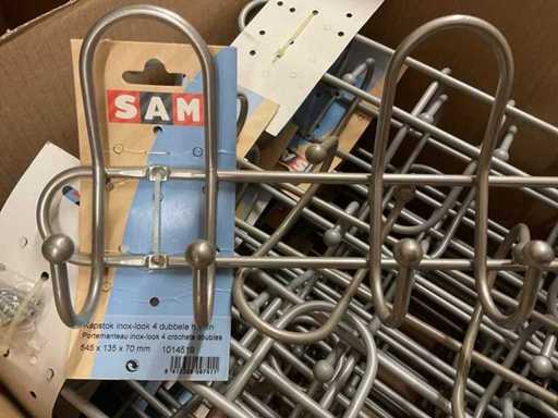 25 attaccappi in stile inox con 4 uncini doppi