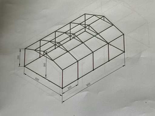 telaio zincato professionale, spessore 38 mm x 1 mm, arcareccio 25 x 0,8 mm, telone in PVC bianco da 380 grammi, inutilizzato in cassa