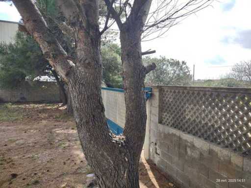 Il terreno comprende circa 1008 m2 ed è completamente recintato, con muri di cemento alti 2,5-4 metri e un cancello scorrevole largo 6 metri, ed è totalmente costruibile. La superficie è lastricata con ghiaia di pietra.