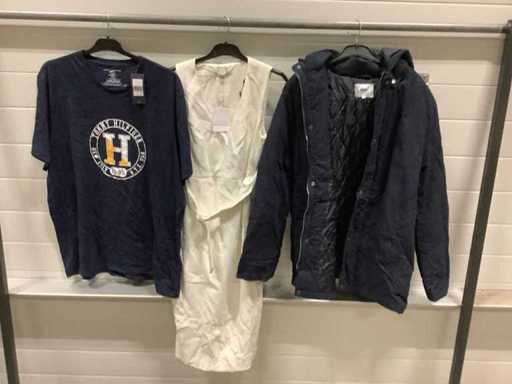 Questo lotto è composto da abiti firmati provenienti da negozi e resi clienti da (grandi) rivenditori. L'abbigliamento non è stato controllato individualmente ed è offerto nelle condizioni in cui si trova. Gli articoli possono mostrare segni di utilizzo o presentare difetti, tra cui ma non limitati a: Macchie, usura, danni minori, etichette mancanti, bottoni o cerniere mancanti, scolorimento, dimensioni anomale, odore (ad esempio fumo/profumo/magazzino) o segni precedenti di lavaggio o usura. La confezione originale e le etichette dei prezzi potrebbero mancare. Composizione, dimensioni, numeri e marchi sono indicative e non garantite. Le foto mostrate danno un'impressione generale del lotto; Non si possono ricacare diritti da questo. Vi consigliamo vivamente di utilizzare il giorno della visione per valutare personalmente le condizioni, la qualità e la vendibilità. Facendo un'offerta, accetti il rischio che (una parte di) l'abbigliamento non sia adatto alla rivendita senza ulteriori azioni come pulire, riparare o ordinare. Facendo offerte su questo lotto, contribuisci a una catena di vendita al dettaglio più sostenibile. Dai una seconda possibilità ai flussi di ritorno e aiuti a ridurre lo spreco di abbigliamento e materie prime.