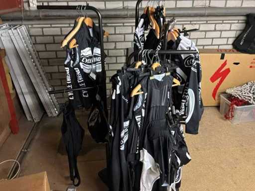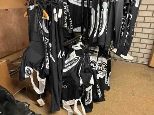 Circa 17 giacche e 17 pantaloni. Varie dimensioni. Include lo staccabiancheri.