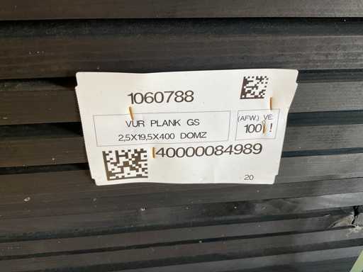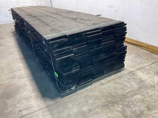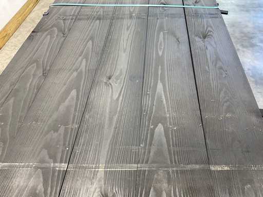 Assi di abete piallate di nero impregnate, di dimensioni 400x 19,5 cm x 2,5 cm.