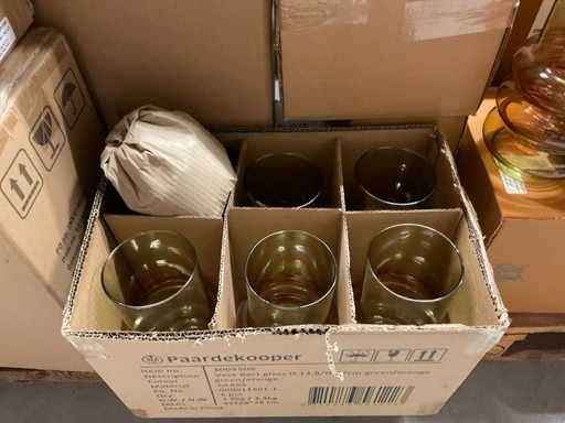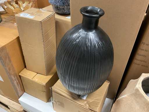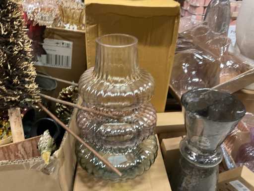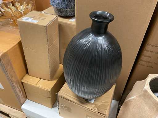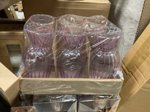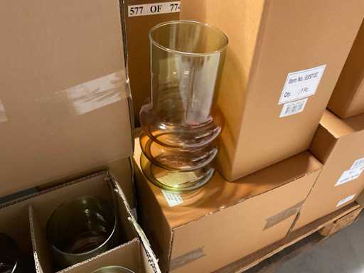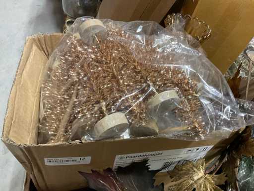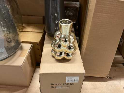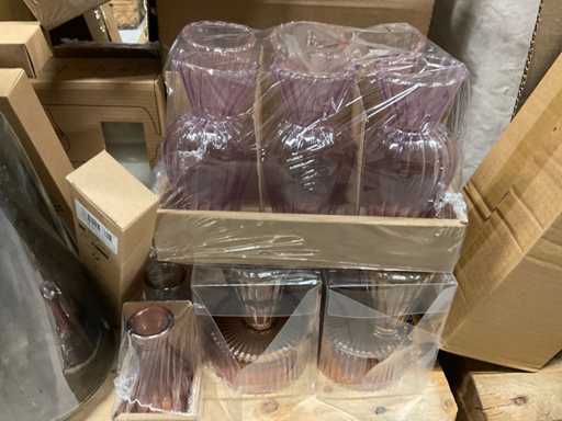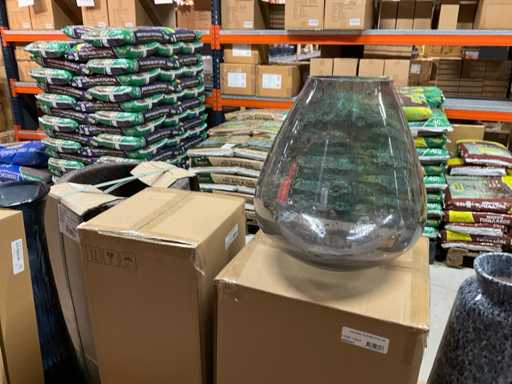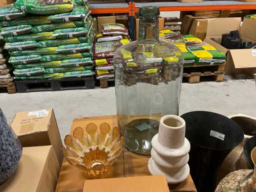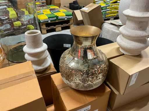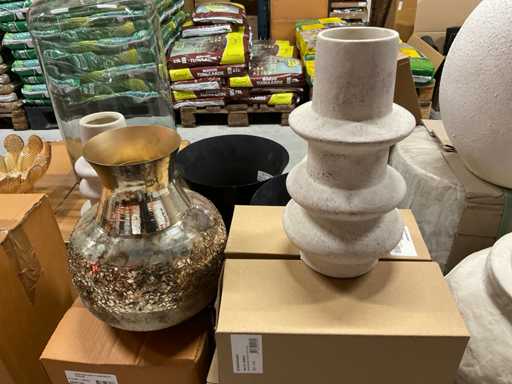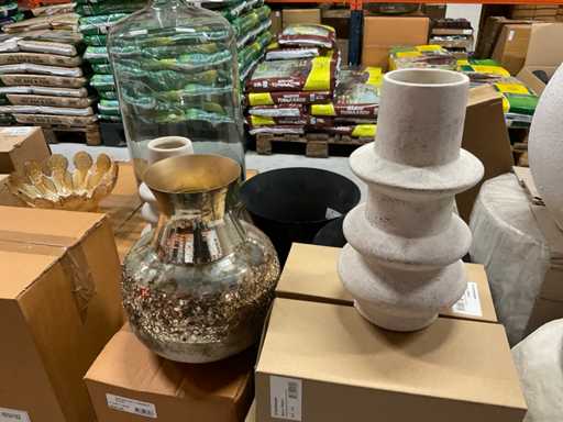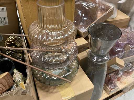 Contenuto su 3 pallet composto da vasi di varie dimensioni, decorazioni natalizie, vasi da fiori e candele. Pallet compresi.