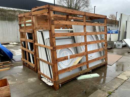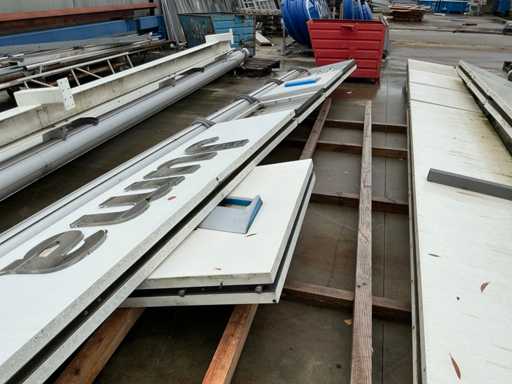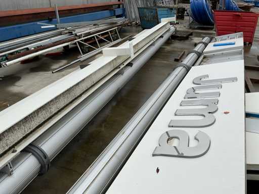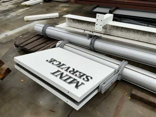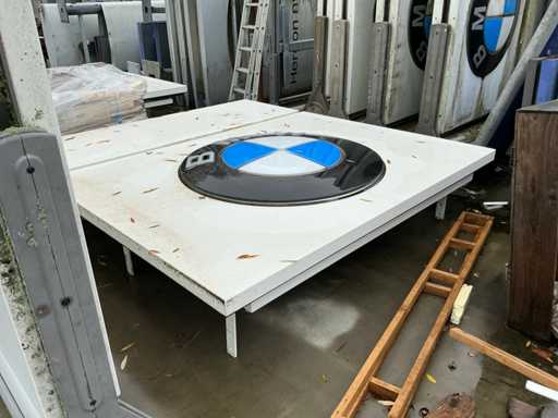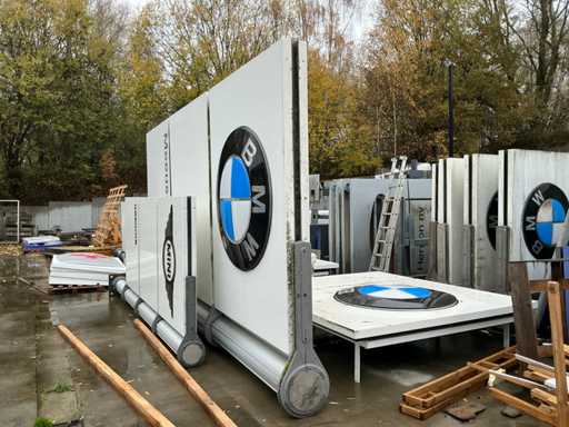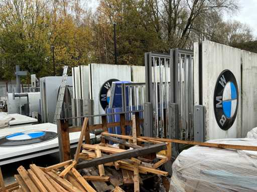 Complete with 1 column Mini and approx. 9 light boxes including BMW and MITSUBISHI, lying in 2 wooden crates, various dimensions up to maximum length: 875cm and maximum width: 293cm, issue according to instructions