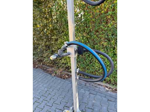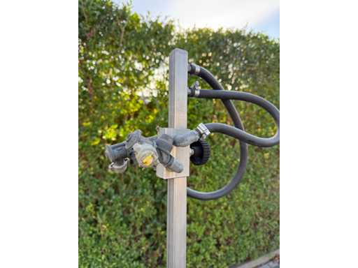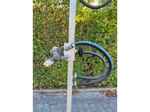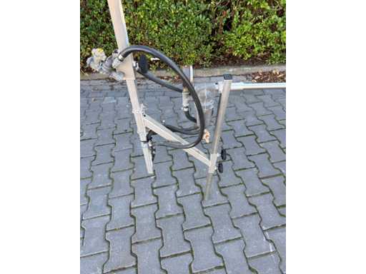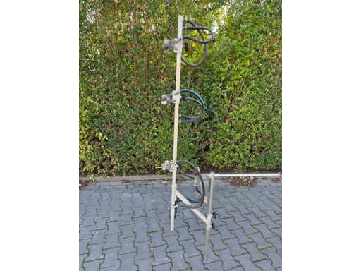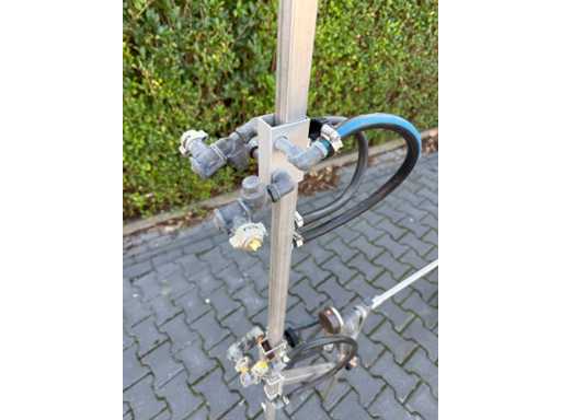 Tutto in acciaio inox, dotato di: testine di spruzzo regolabili, altezza di spruzzo regolabile, albero di spruzzatura 1600 mm, regolatore di pressione