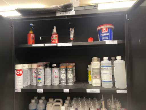 Contenuto di armadietti/rastrelliere in soppalco (mobili e rastrelliere non inclusi)