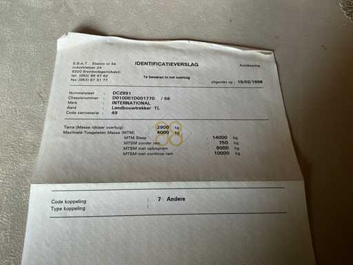 Weight & Permissible masses (according to identification report 19/02/1998)