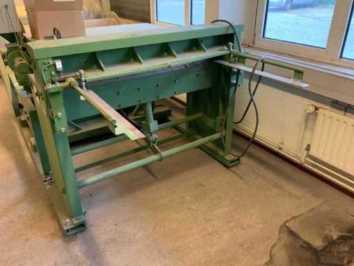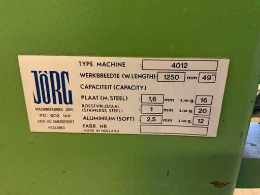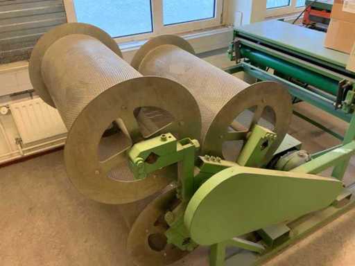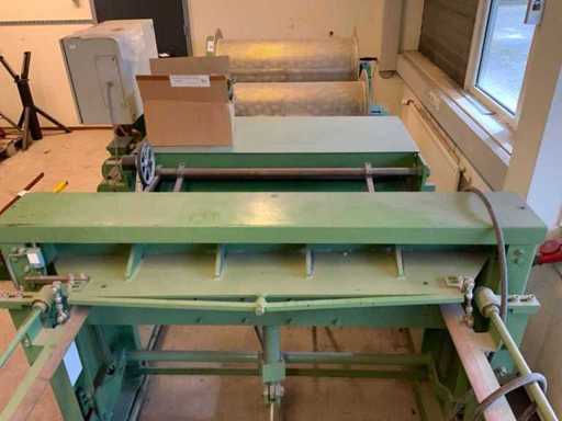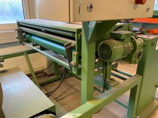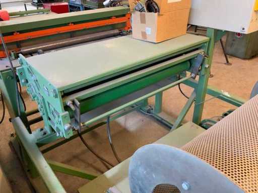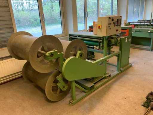 Larghezza di lavoro: 1250 mm, composta da: 1 macchina srotolatrice con rullo di stretching, massimo. Peso del rullo: 3 x 300 kg, 1 forbice da tavolo Jörg, tipo: 4012, capacità: 1250 x 1,6 mm con scartamento di fondo
