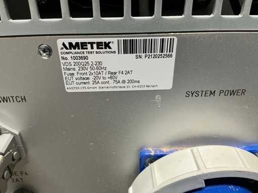 AMETEK - VDS200Q25.2 - 2021 - Simulatore di caduta di tensione e batteria + Integrato AMETEK AutoWave-WR
