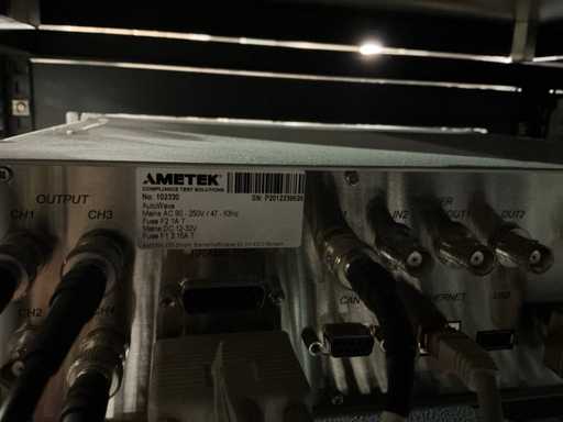AMETEK VDS200Q25.2: funzionamento bipolare a 4 quadranti, intervallo di uscita da -20 V a +80 V, corrente di uscita da 0 a 25 A continuo, corrente di picco 75 A per 200 ms, larghezza di banda DC-150 kHz, alimentazione 1 fase 100/120/230 V ± 10% L/N/PE, impedenza della sorgente da 10 a 200 mOhm, AMETEK AutoWave-WR: uscita 4 canali, tensione di uscita 10 V unipolare o bipolare, ingressi 2 canali, tensione di ingresso 5/10/20/50/100 V unipolare o bipolare, Risoluzione 16 bit, frequenza DC 50 kHz, memoria 60 GB
