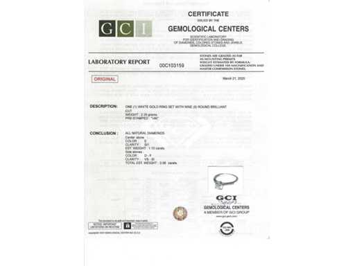 Anello Luxury Diamante Naturale 1,16 carati in oro bianco 18 carati peso totale 2,35 gr. con un diamante naturale rotondo taglio brillante E/SI1 di 1,10 carati con 8 pietre diamanti naturali tondi brillanti, qualità D-E-F / VS-SI di 0,06 carati. Certificato da IGI Laboratoire, uno dei più grandi istituti internazionali di certificazione e valutazione di diamanti e pietre preziose. Per ulteriori informazioni, consultare il certificato. I gioielli in realtà sono migliori delle foto. Prezzo stimato dal rivenditore: 12'750.- Nuovo Gioiello.