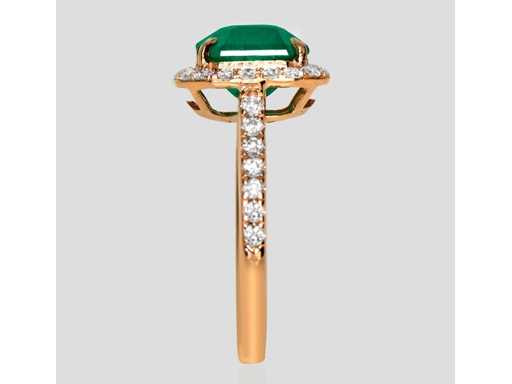 Anello di lusso in Zambia Green Emerald naturale 3,46 carati in oro rosa 14k, peso totale 2,78 gr. Pietra centrale: uno smeraldo verde naturale dello Zambia in smeraldo tagliato 2,95 carati con 37 diamanti brillanti rotondi da 0,51 carati. Certificato dall'IGI Labaratoire, uno dei più grandi istituti indipendenti al mondo per la certificazione e valutazione delle pietre preziose. Per maggiori informazioni, vedi il certificato. I gioielli in realtà sono migliori delle foto. Prezzo stimato al dettaglio: € 13.850. - Gioielli nuovi.