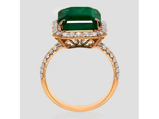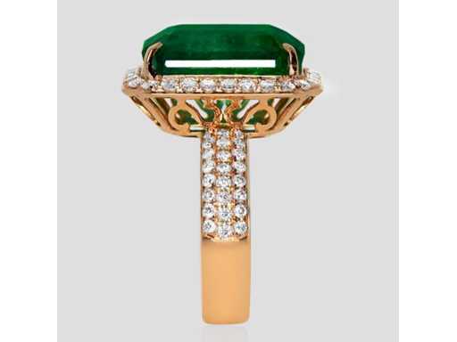 Anello di lusso in Naturale Zambia Green Emerald, 8,21 carati in oro rosa 14k, peso totale 5,25 gr. Pietra centrale: uno smeraldo verde Zambia naturale in smeraldo tagliato 7,35 carati con 78 diamanti brillanti rotondi da 0,86 carati. Certificato dall'IGI Labaratoire, uno dei più grandi istituti indipendenti al mondo per la certificazione e valutazione delle pietre preziose. Per maggiori informazioni, vedi il certificato. I gioielli in realtà sono migliori delle foto. Prezzo stimato al dettaglio: € 44.950. - Gioielli nuovi.