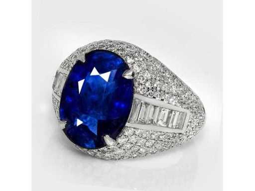 Anello di lusso per gioielli alti in zaffiro blu profondo naturale 7,20 carati