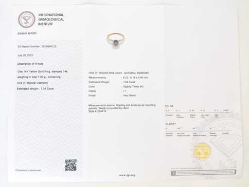 Anello in oro 14 kt con diamante naturale 1.04 ct