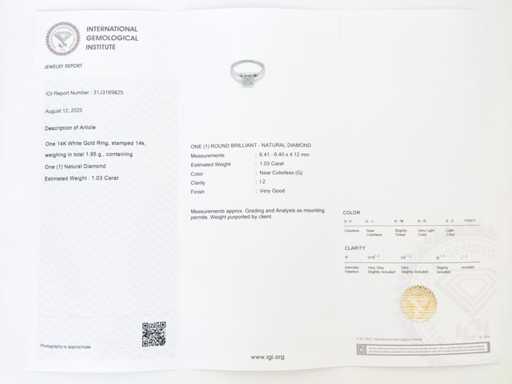Anello in oro bianco 14 kt con diamante naturale 1,03 ct
