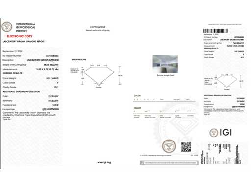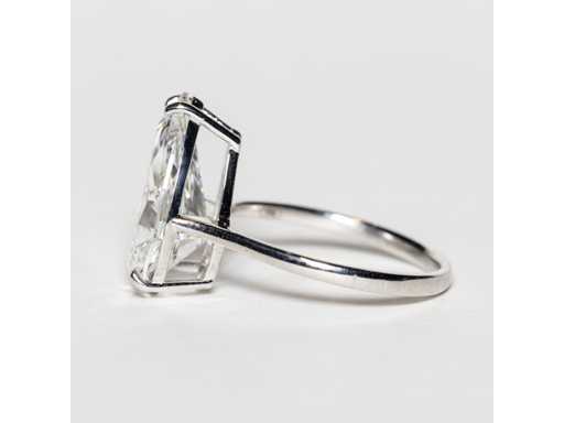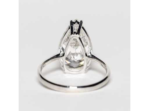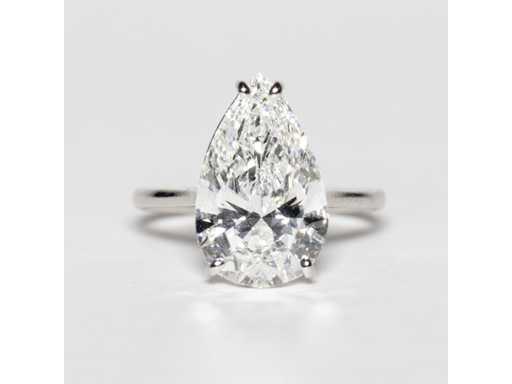 Rapporto di laboratorio IGI: LG733540253 Anello in bianco 18KT Taglia: 14/54/6-1/2 Forma principale del diamante: goccia Totale: 5.01 crt. Colore: F Taglio: Eccellente Simmetria: ottima Fluorescenza: nessuna Luminosità: VS1 Visione su appuntamento