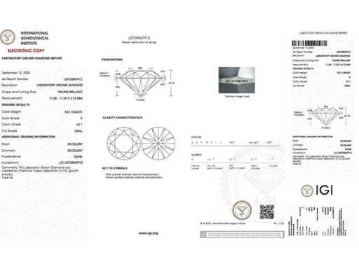 Questo bellissimo anello in oro bianco da 18 carati ha un diamante tondo Labgrown di 5,01 ct. Il diamante ha un colore E e una nitidezza VS1. Il diamante possiede un certificato ufficiale IGI che ne garantisce la qualità. La dimensione dell'anello è 54 e può essere cambiata se desiderato, si prega di contattare troostwijk telefonicamente o via email.