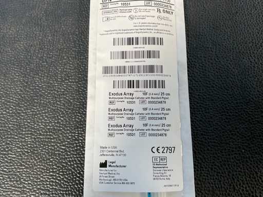 Angiodinamica - Catetere di drenaggio multiproposto 10F 25 cm STD Loop con banda marcatrice radiopaqua PG (per 5 pezzi). (4x)
