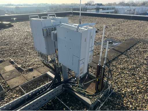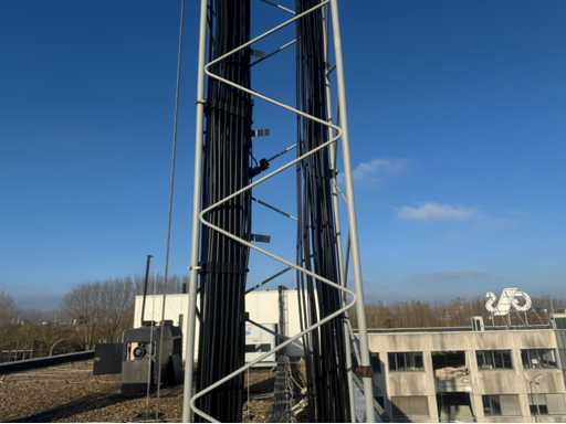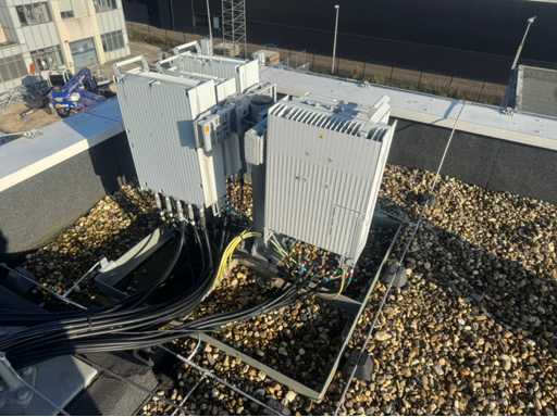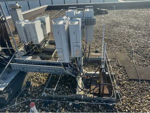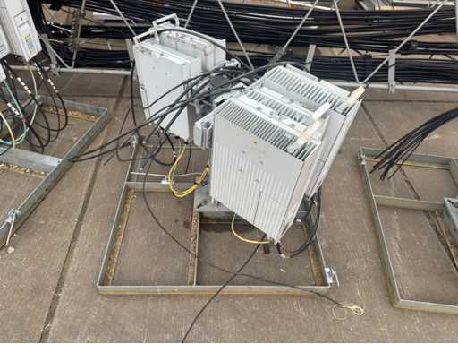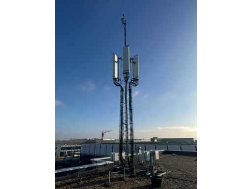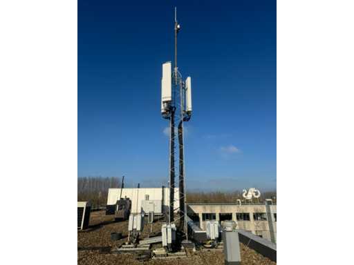 Torre di trasmissione con apparecchiatura Huawei; 15 armadi; equipaggiamento montato su piedi d'acciaio; telaio in acciaio dell'albero; l'altezza totale dell'albero è di circa 13000 mm; viene scollegato e smontato professionalmente dal venditore;