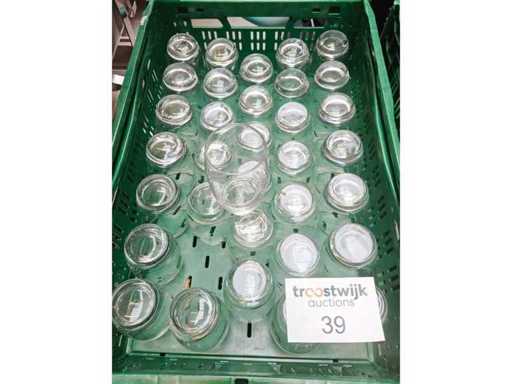 3 contenitori di trasporto contenenti circa 102 bicchieri d'acqua, 35cl