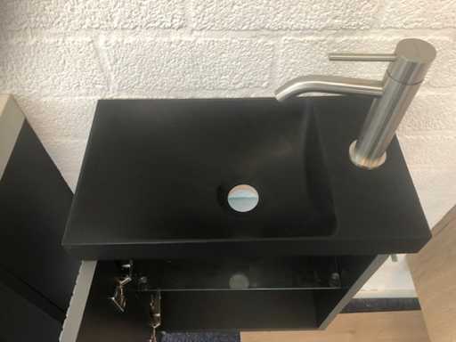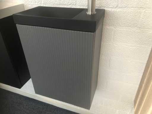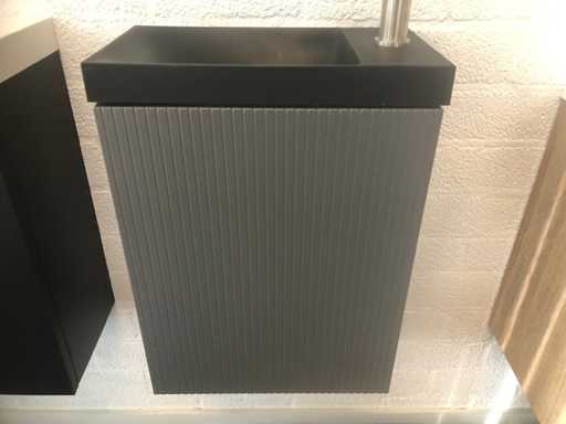 Mobile fontana rigato; dotato di mensola in vetro e fontana; senza rubinetto