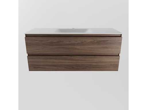Armadio bagno con lavandino a superficie solida (pietra artificiale) 120cm, con foro del rubinetto, 2 cassetti, mobile superiore in rovere, posizionare lavabo: al centro