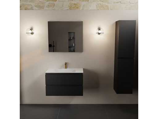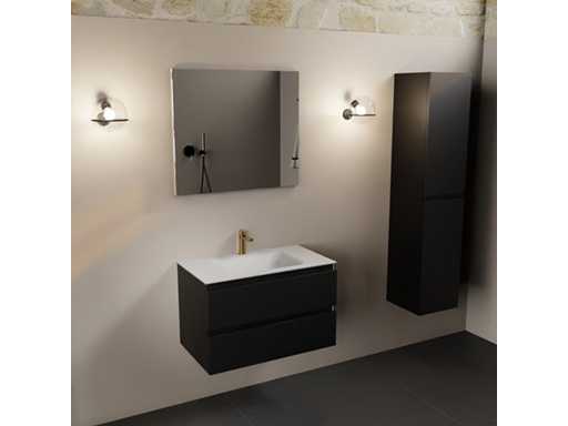 Armadio da bagno con lavabo a superficie solida (pietra artificiale) 80cm, con foro del rubinetto, 2 cassetti