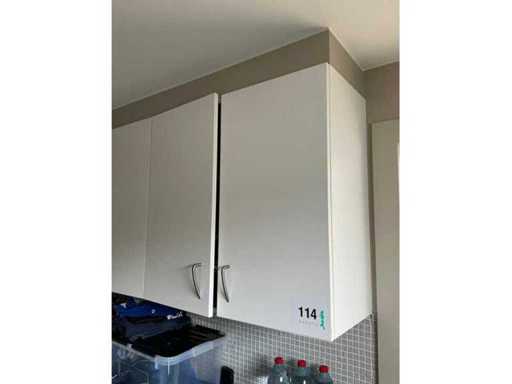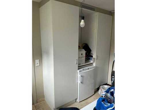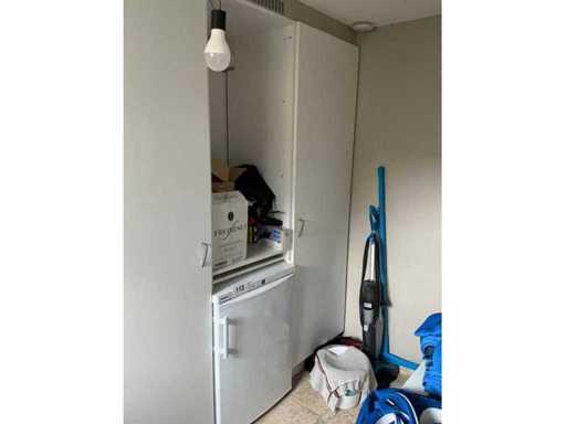 Armadio di deposito con dimensioni approssimative 190 x 59 x 220cm + mobile da parete con dimensioni approssimative 206 x 34 x 76cm.